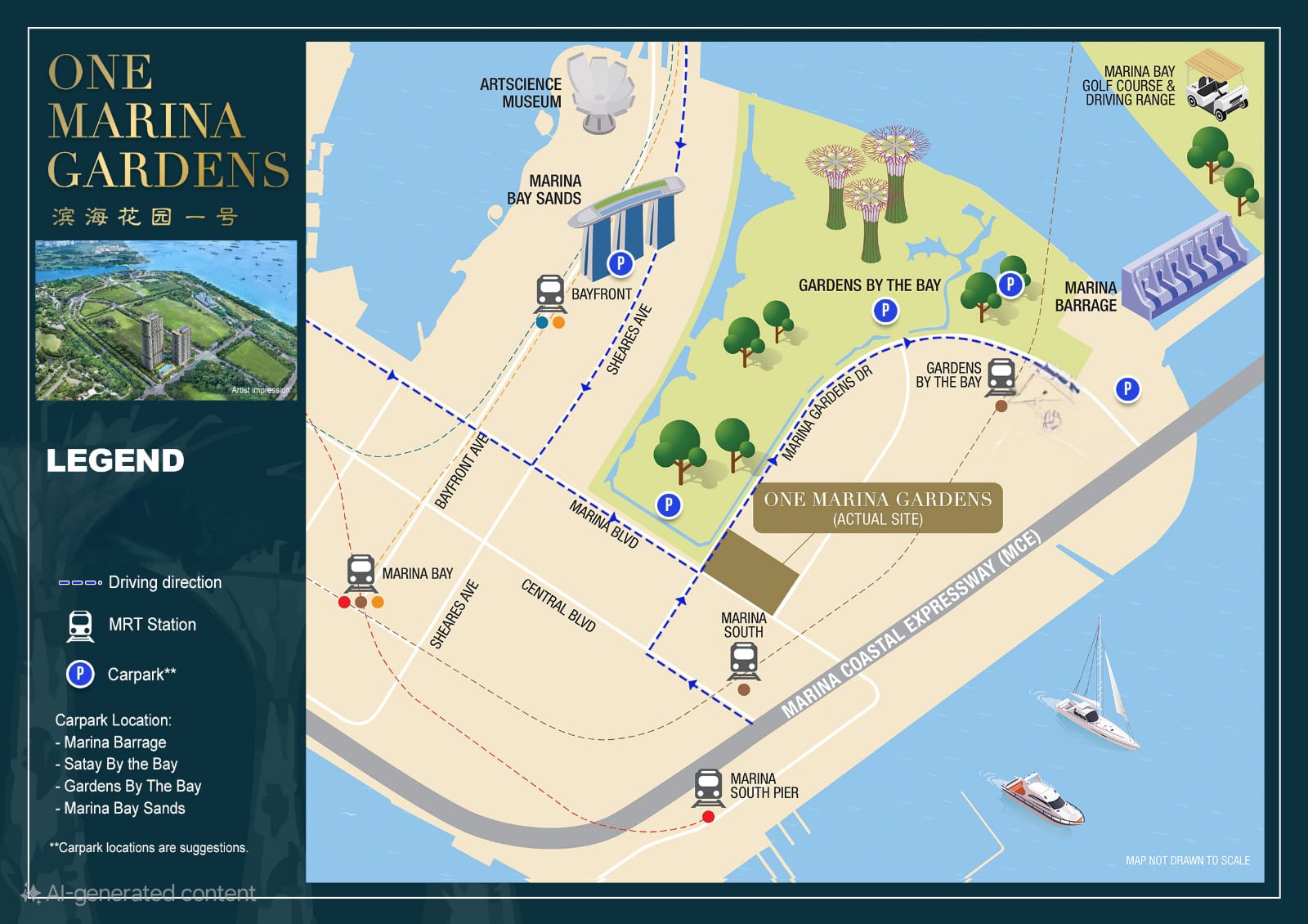 Residents of the development enjoys unparalled access to some of Singapore's most celebrated attractions under One Marina Gardens Location. The area is designed for seamless connectivity, with the Marina South MRT station providing easy access to the Downtown Line and the wider MRT network.